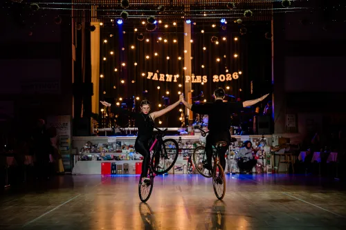 O překvapení na začátek výročního plesu se postaralo smyčcové Kafe Kvartet z Olomouce a kapela Fordance Orchestra z Českých Budějovic. Společně zahráli speciální skladbu složenou přímo pro tento ples, kterou tancem při svíčkách doprovodily 3 páry juniorů z brněnského tanečního klubu Kometa. Uprostřed večera pak nádherná vzpomínková párová krasojízda na kole dovedla plesající až k půlnočnímu překvapení, kterému kraloval tanečník StarDance Jan Onder s partnerkou a jejich show, při níž se tančící páry mohly nejen skvěle bavit, ale něco se i naučit. :-) A pak se plesalo až do časných ranních hodin.