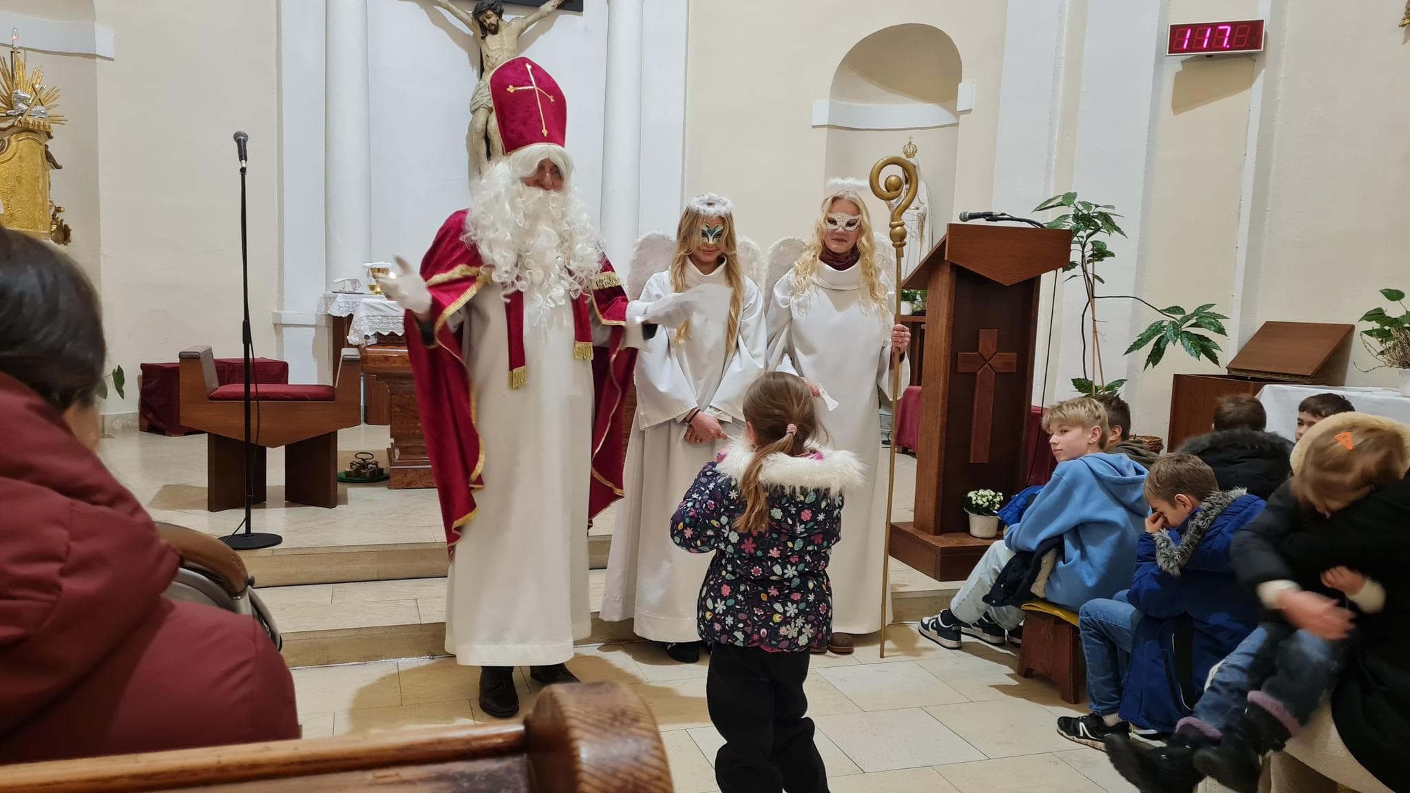 Začátkem prosince každoročně zveme po mši svaté všechny děti z farnosti na setkání se svatým Mikulášem a jeho andělským pomocníkem. A když se k nám přidáte a Mikuláši s námi zazpíváte, sladká odměna vás nemime!