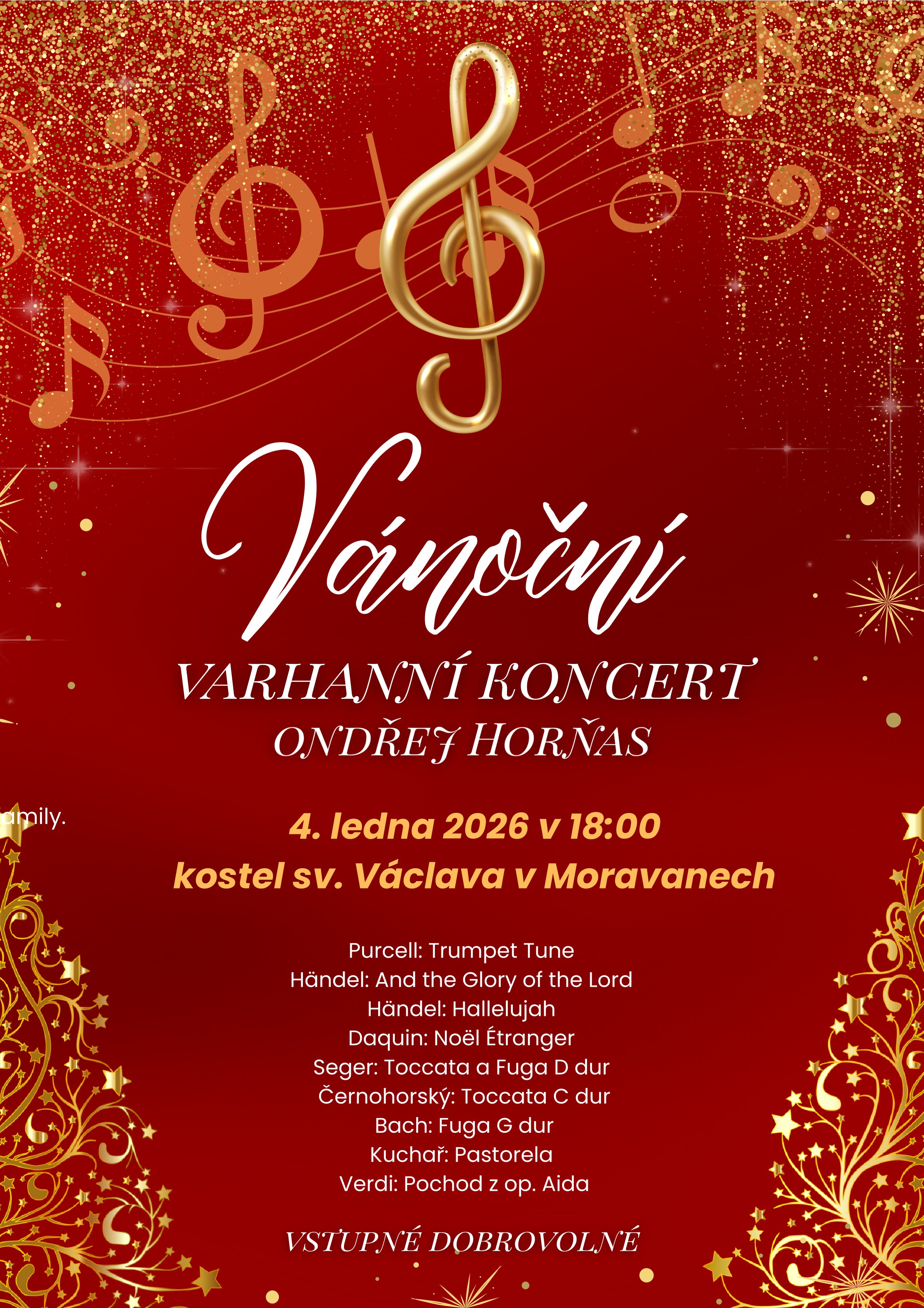 V čase vánočním vás v neděli 4. ledna 2026 v 18 hodin zveme na vánoční koncert Ondřeje Horňase do farního kostela sv. Václava.