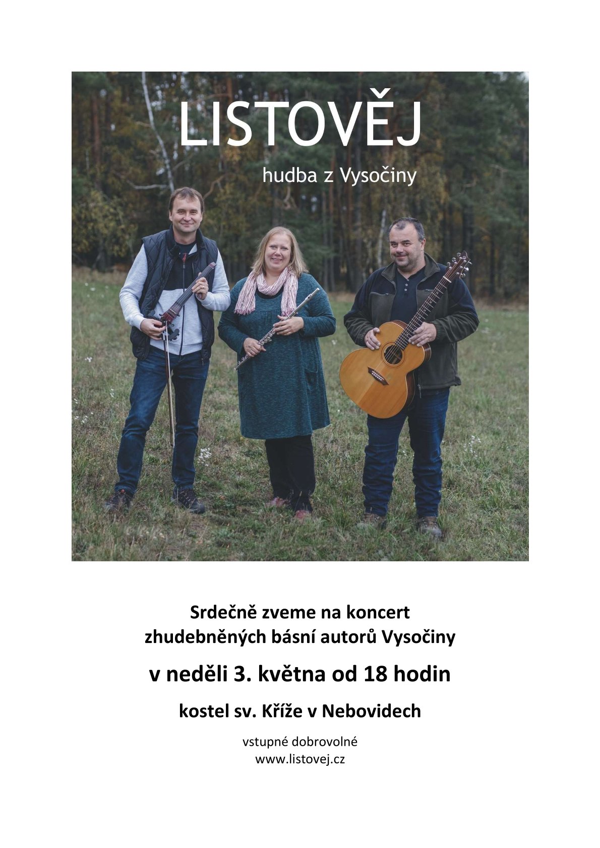 Zveme do nebovidského kostela na koncert skupiny Listověj, která předvede zhudebněné básně Jana Zahradníčka, Václava Renče, Bohuslava Reynka a dalších.